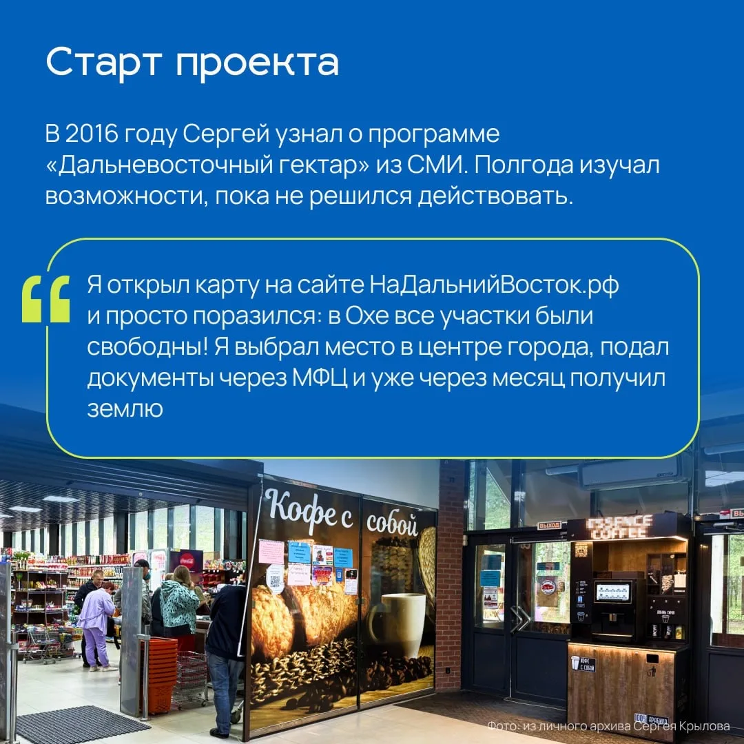 Каждый его проект — не просто бизнес, а вклад в будущее своей малой родины. История Сергея — еще один пример того, какие возможности открывает программа «Дальневосточный гектар».