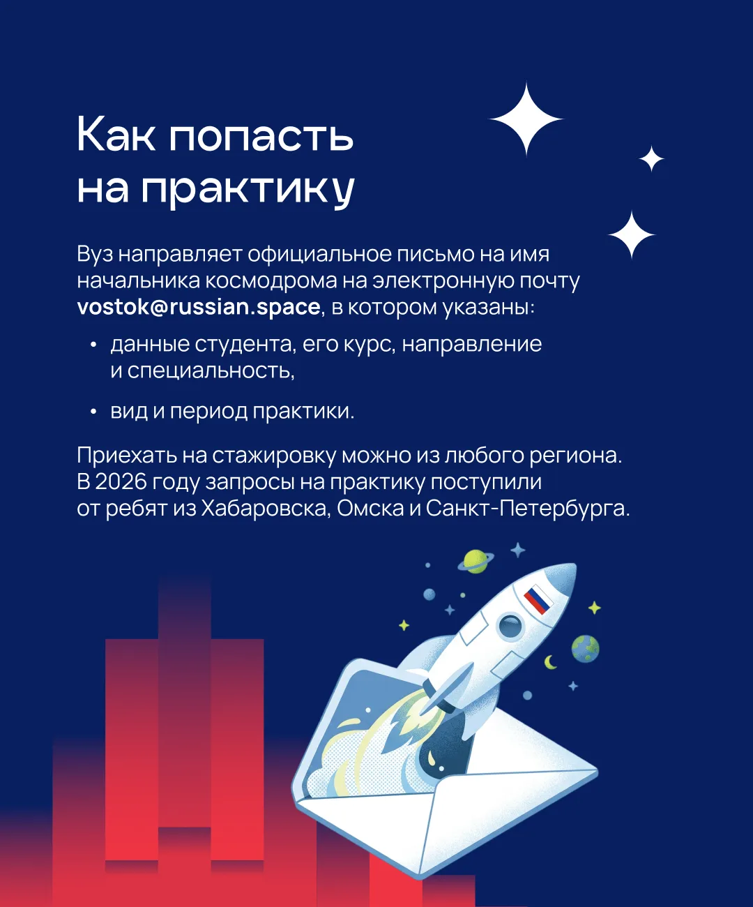 Где учат специалистов космической отрасли и как устроена практика на «Восточном» — узнаете из карточек 👆🏻
