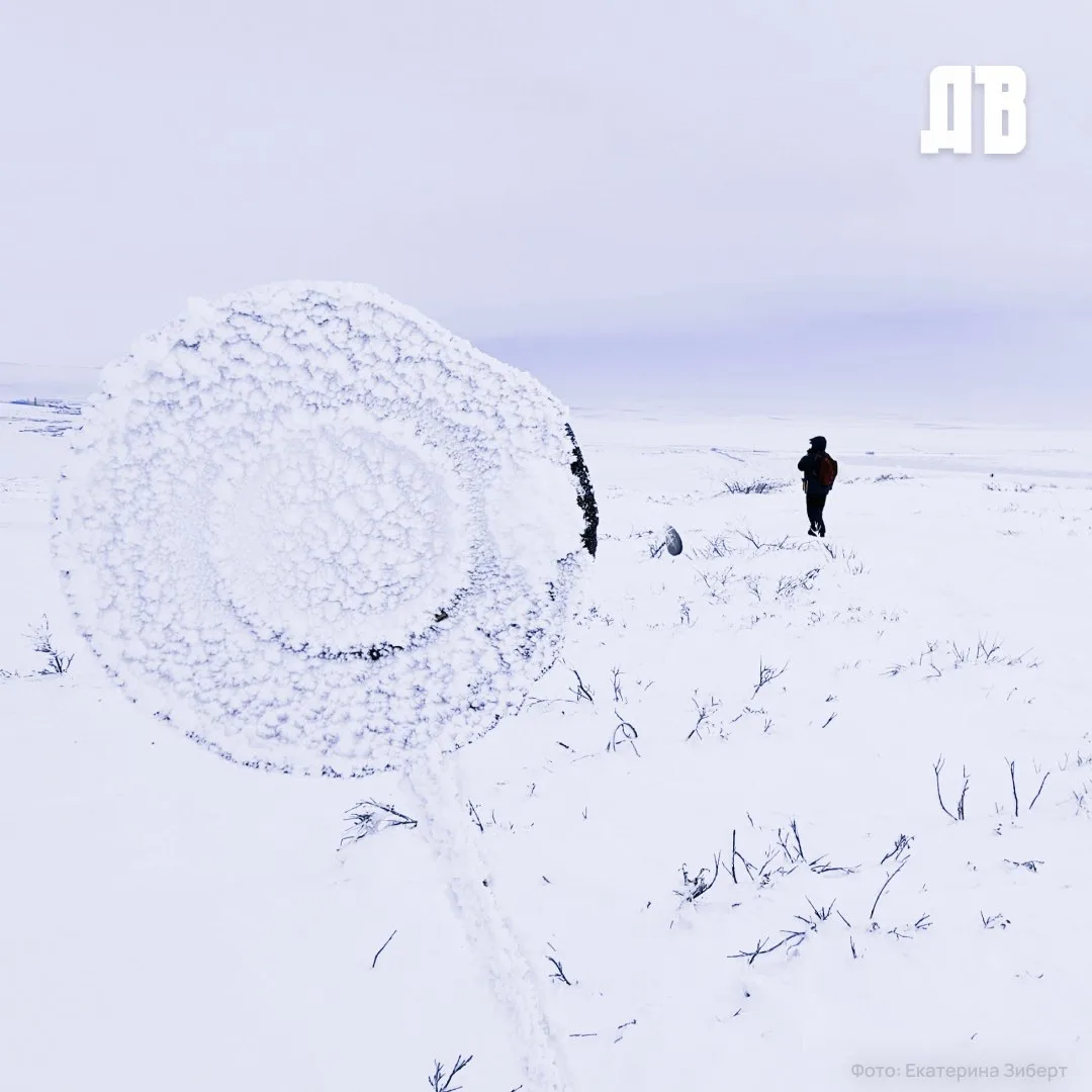 А на Чукотку она пришла еще раньше — первый снег на Крайнем Севере выпал в начале октября, а эти кадры сняты в конце ноября. Посмотрите, какое ледяное царство! При этом погода была всего −2 °C.