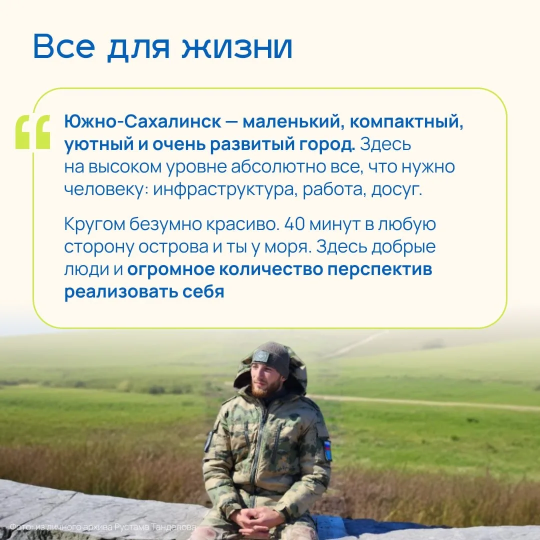 «Я влюбился в остров всей душой и сердцем. Это мое место, поэтому я решил остаться», — уроженец Кабардино-Балкарии Рустам Танделов называет Сахалин сказкой.