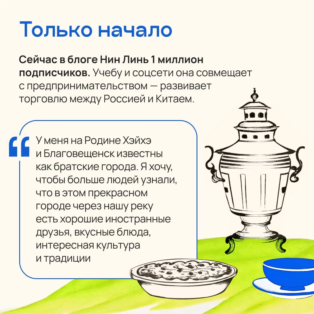 Почему Нин Линь захотела приехать в Россию и о чем она рассказывает в своем канале — читайте в наших карточках.