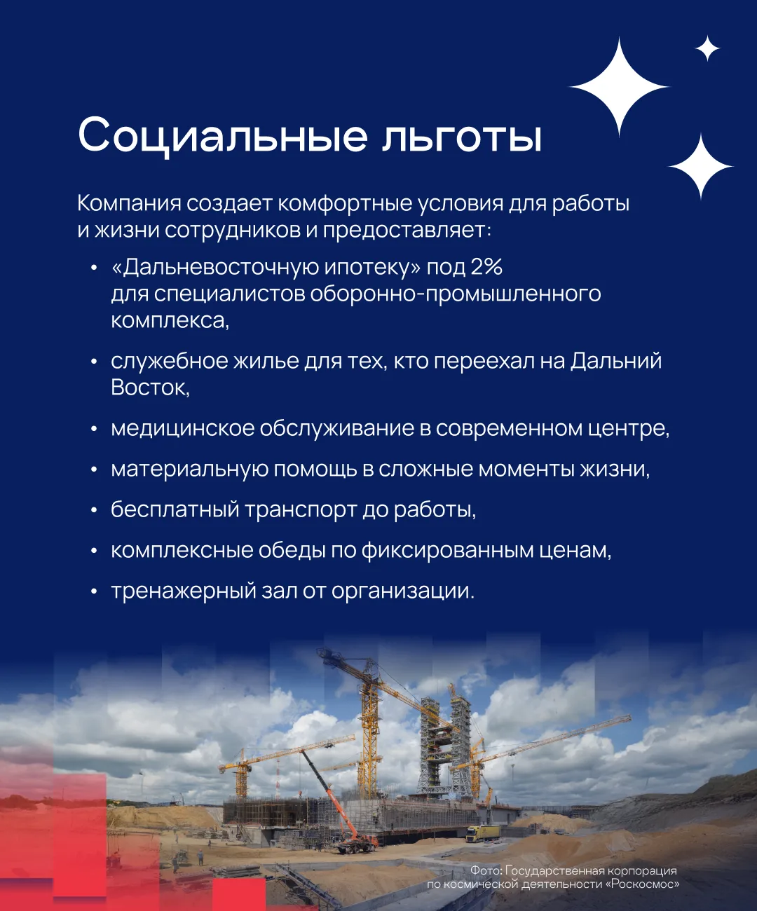 Ипотечный кредит под 2 %, отпуск 36 дней, обслуживание в современном медцентре — эти и другие льготы получают сотрудники космодрома «Восточный» в Амурской области 🚀