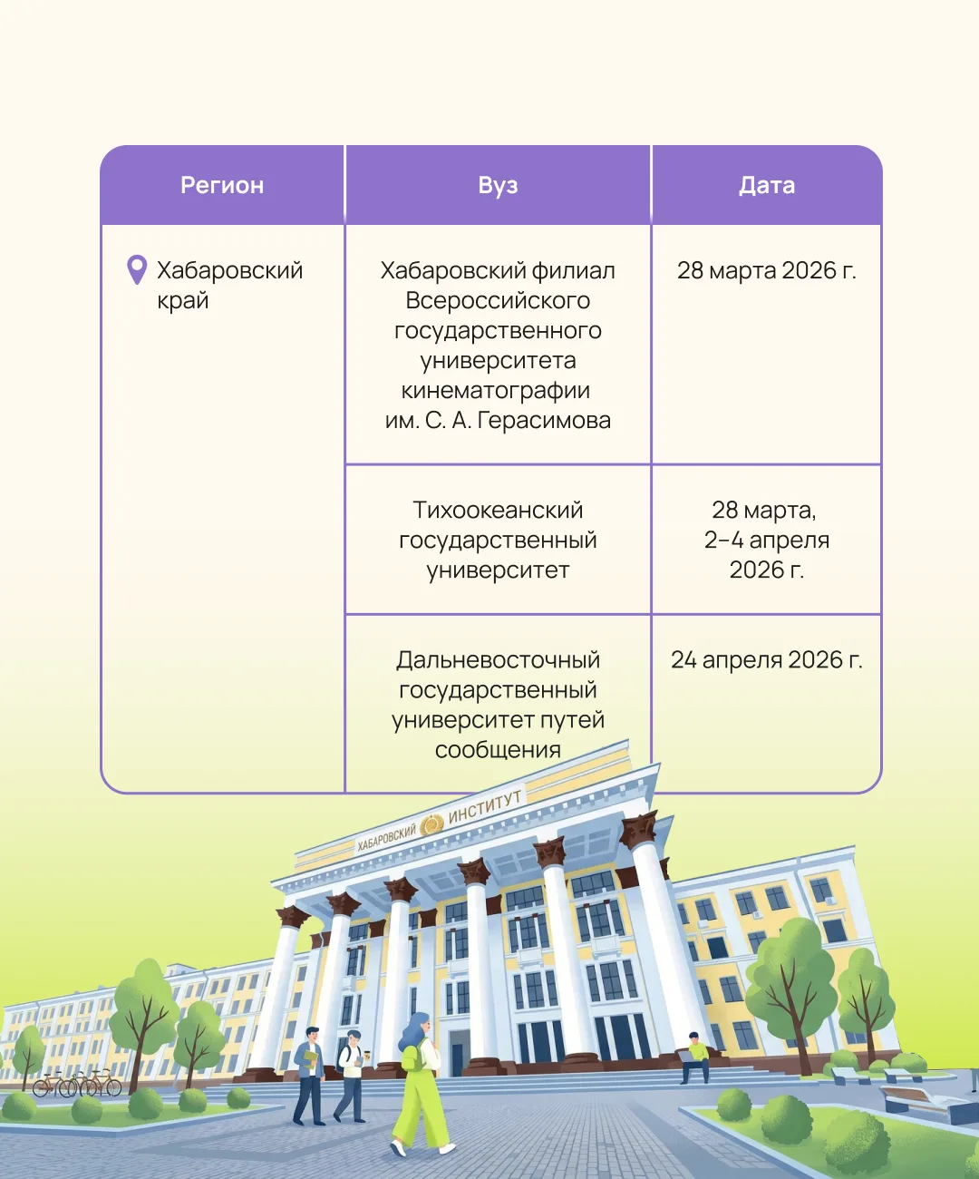 Все подробности о вузах ДФО и поступлении в 2026 году найдете на нашем сайте дальнийвосток2030.рф в разделе «Образование».
