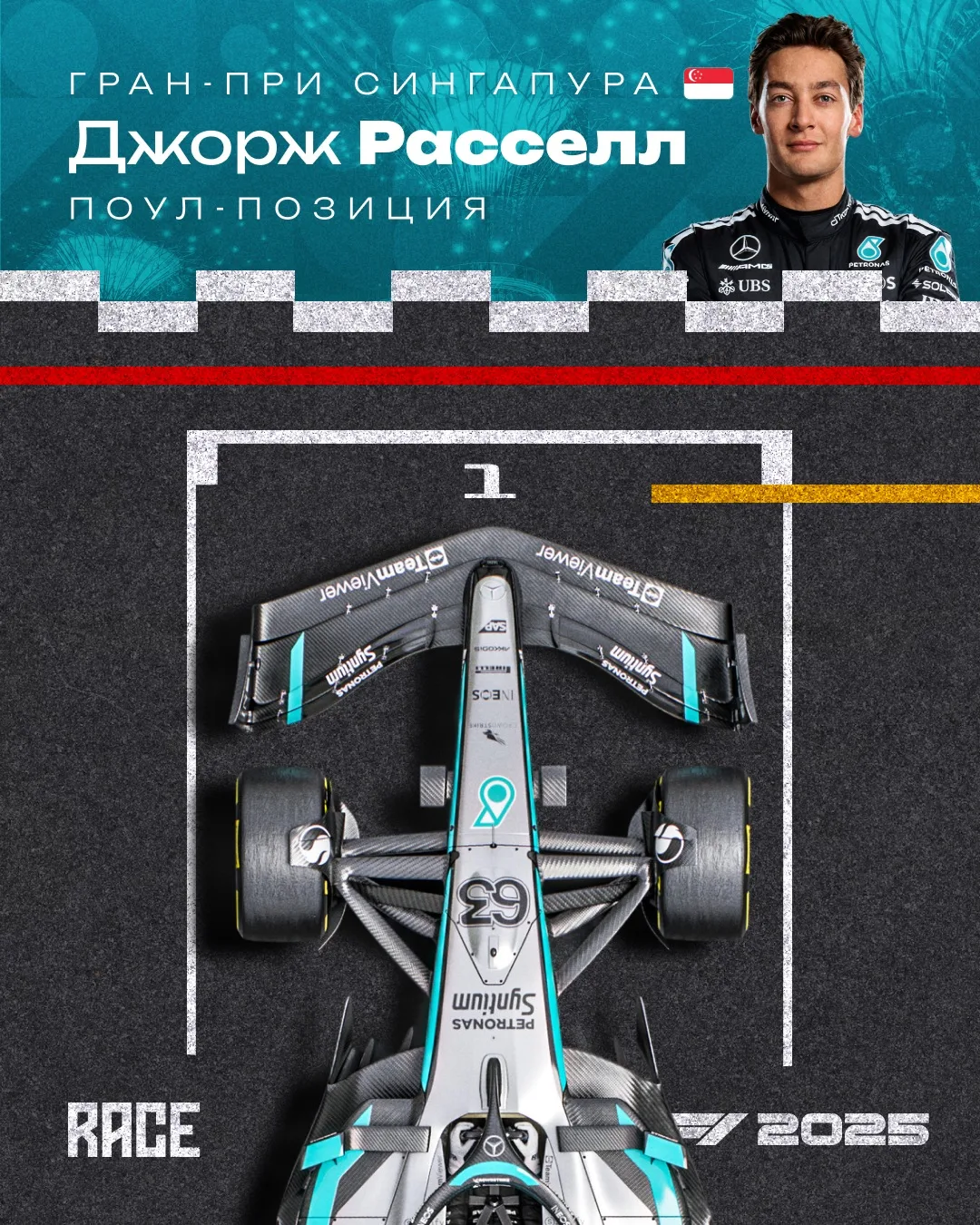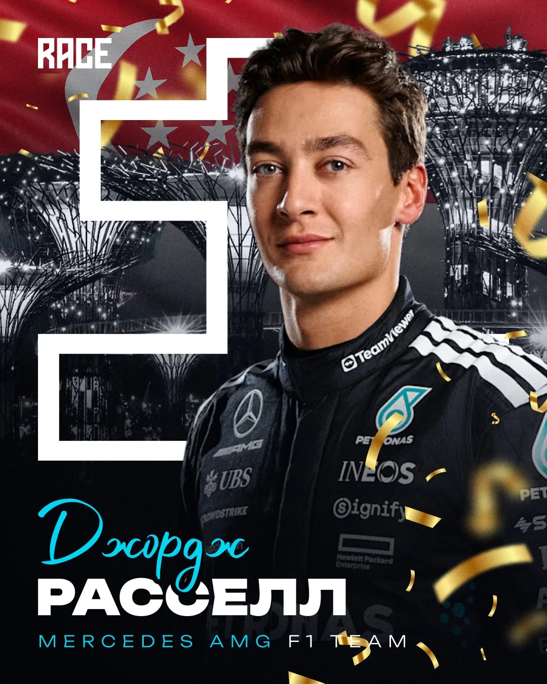 Джордж Расселл одерживает победу на гран-при Сингапура — вторую в сезоне и пятую в карьере! Макс Ферстаппен и Ландо Норрис составят британцу компанию на подиуме.
