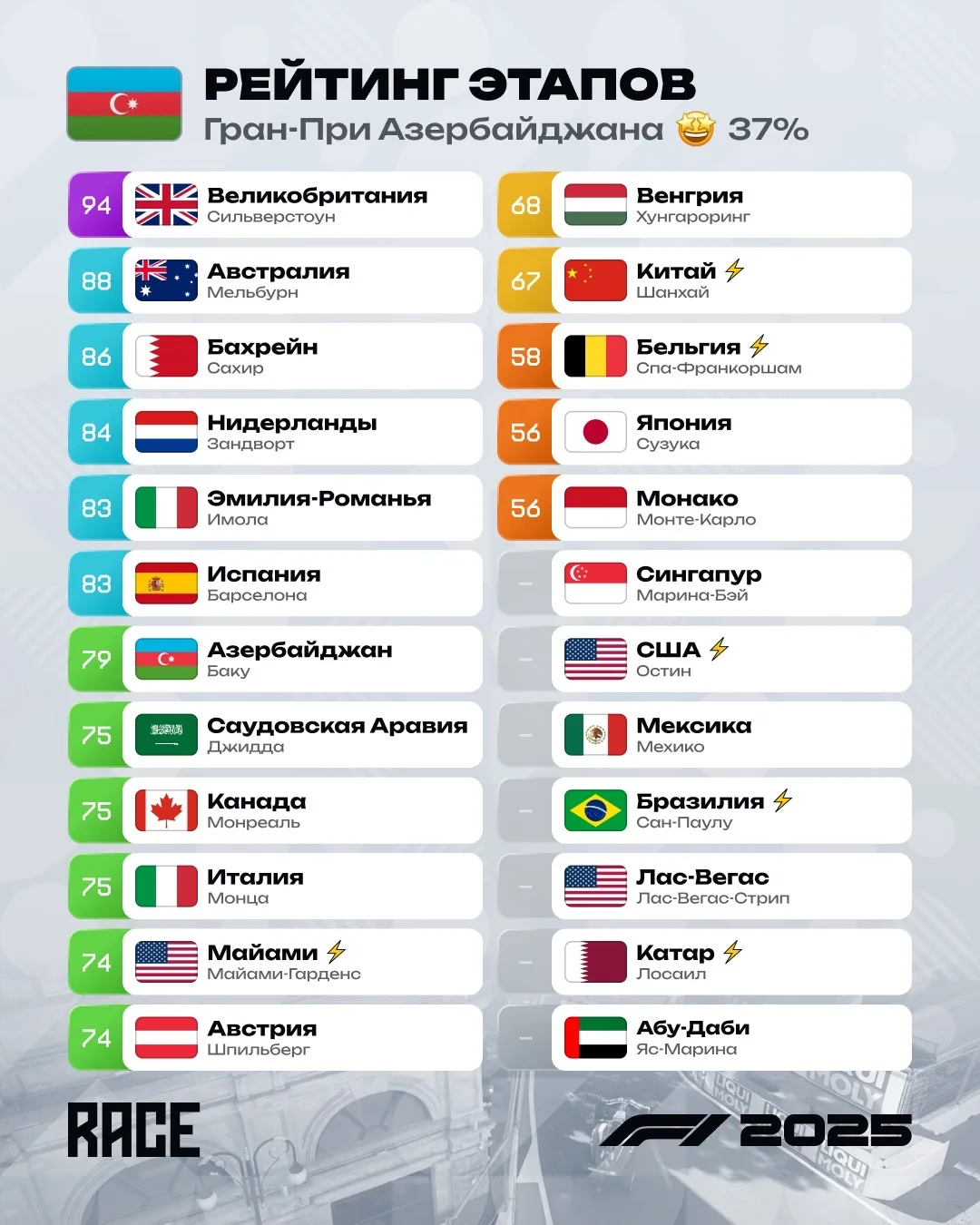 🗳 В традиционном голосовании после гран-при Вы, наши читатели, оценили этап в Азербайджане на 79 баллов.