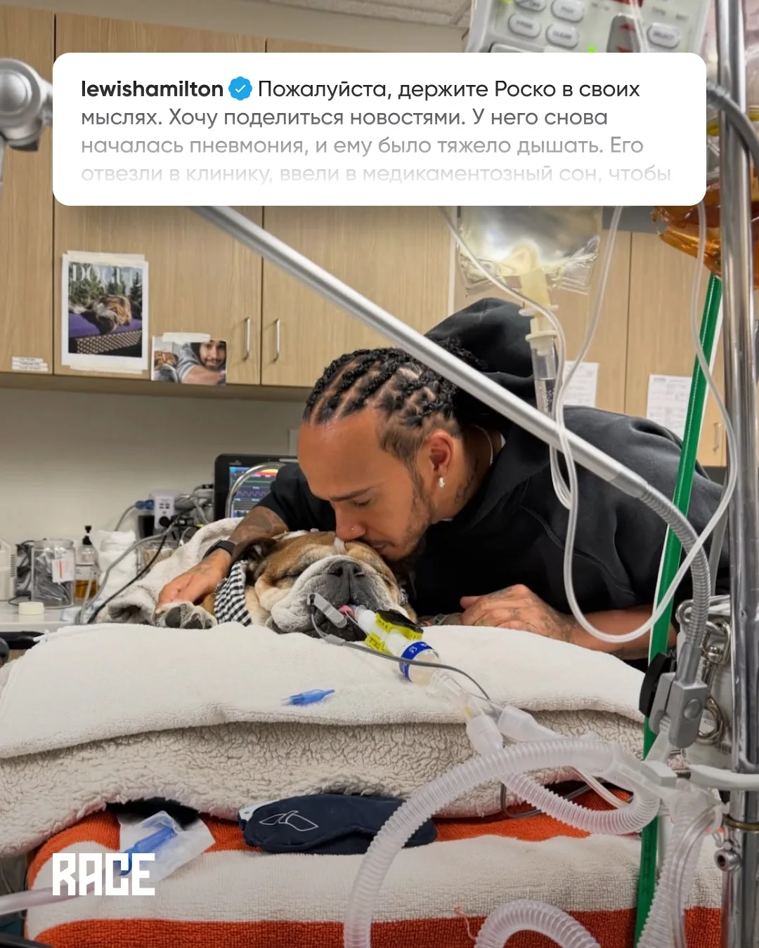 Льюис Хэмилтон в своих социальных сетях сообщил, что его 12-летний бульдог Роско перенёс тяжёлую пневмонию и впал в кому.