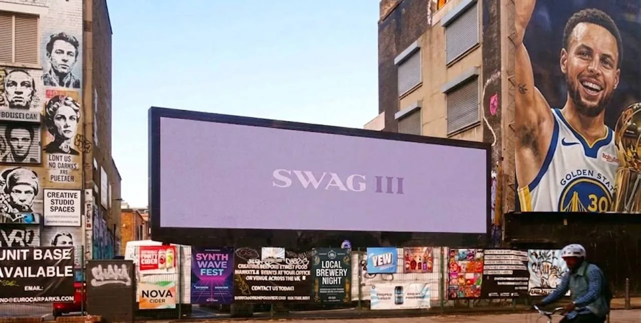 💜 В Нью-Йорке замечен новый рекламный щит фиолетового цвета, анонсирующий альбом Джастина Бибера «SWAG III»!