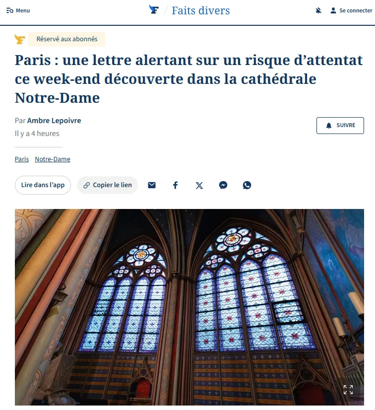 ⚠️ Аноним угрожал терактом в соборе Нотр-Дам