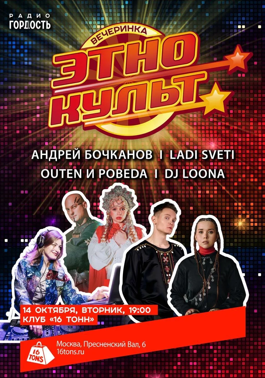 14 октября на легендарной сцене клуба «16 тонн на Пресне» в 19:00 состоится вечеринка «ЭТНОКУЛЬТ»!