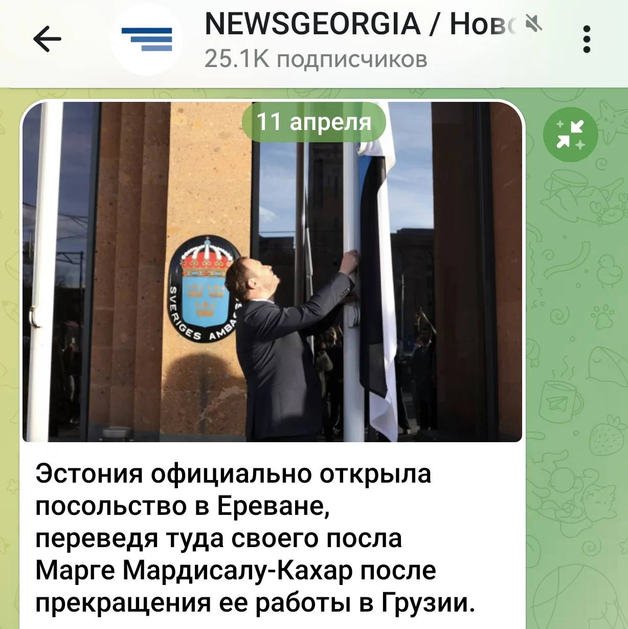 Эстония наказала Грузию за отказ от европейского пути: перевела эстонского посла в Грузии и Армении (один на две страны) из Тбилиси в Ереван.