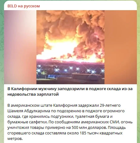 Недовольный зарплатой мигрант в США сжёг склад с подгузниками на $500 миллионов.