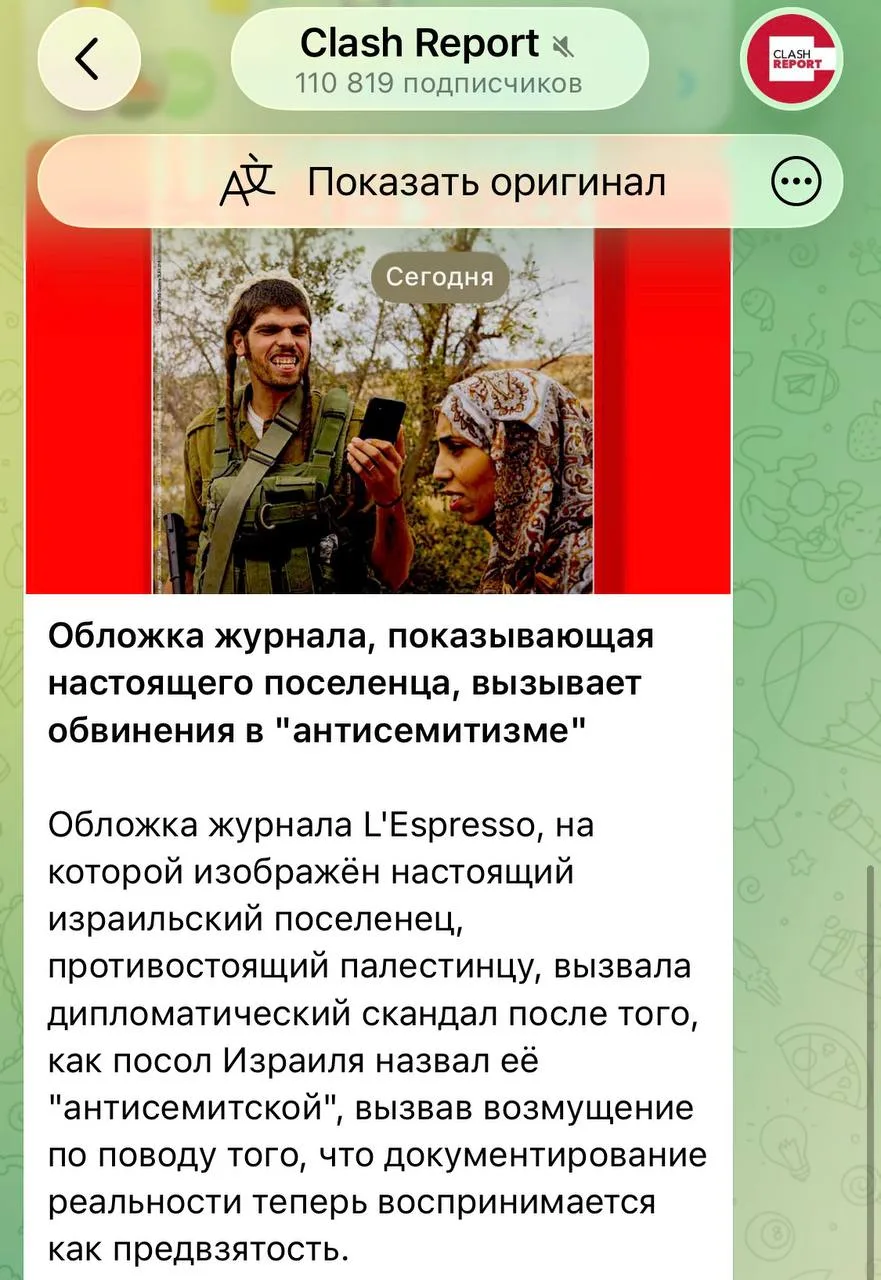 Посол Израиля обвинил итальянский журнал в антисемитизме за реальное фото из Палестины.