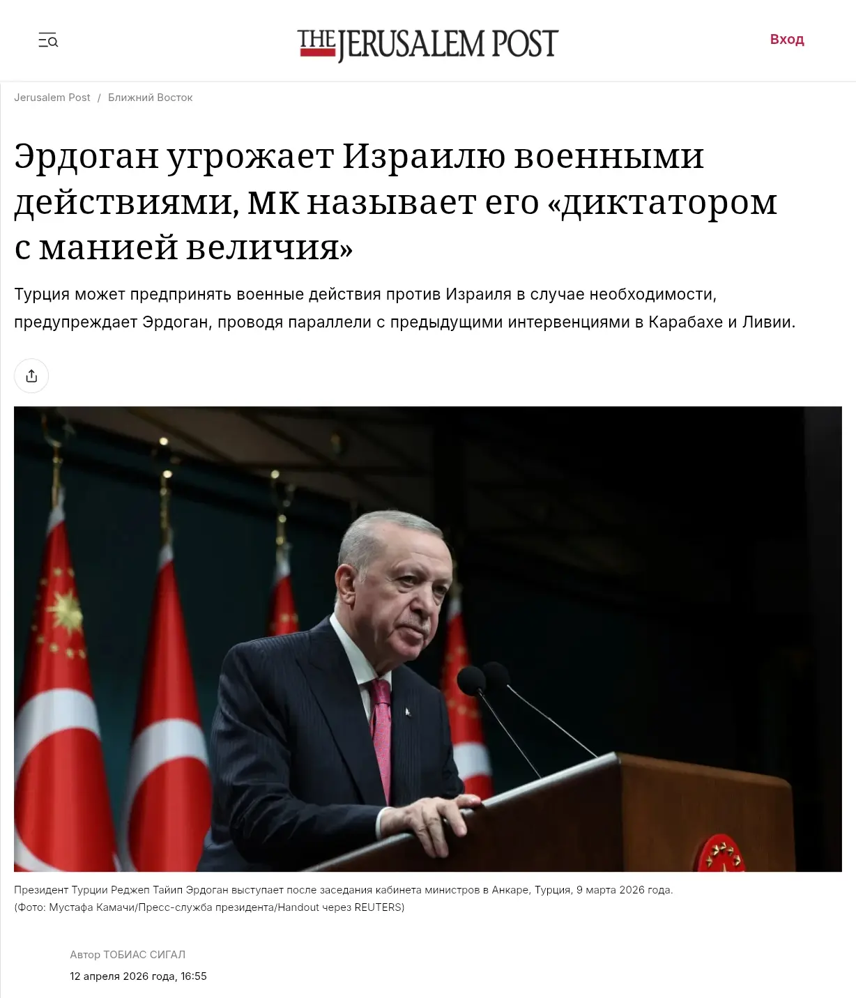 Эрдоган пригрозил Израилю военными действиями.