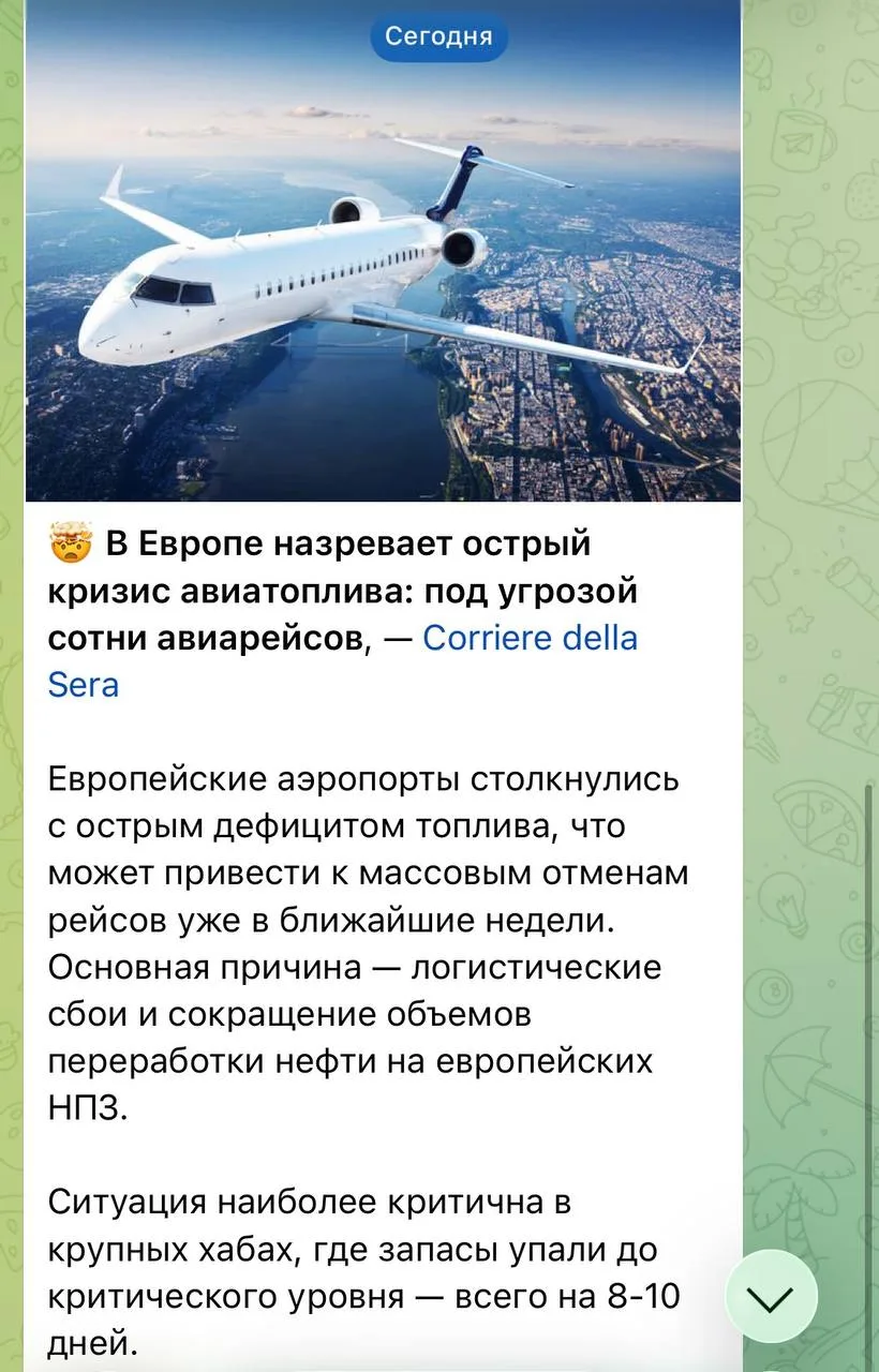 По данным Международной ассоциации воздушного транспорта, с начала войны в Иране цены на авиатопливо в Европе выросли более чем в 2,2 раза.