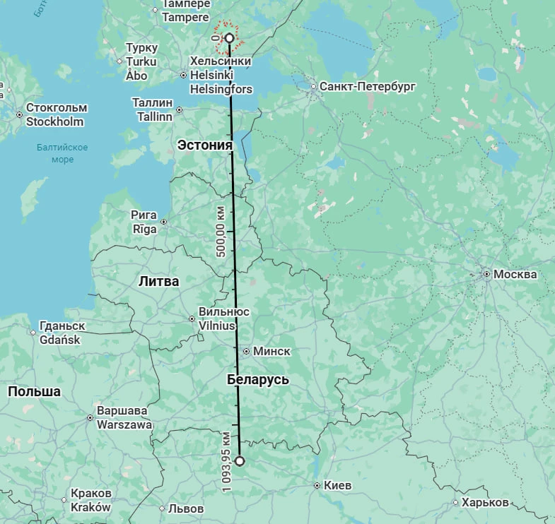 Расстояние по прямой от Коувола (место падения дрона) до границы Украины составляет более 1000 км. При этом упавший БПЛА — модель ”Чайка” с дальностью полёта всего 750 километров.