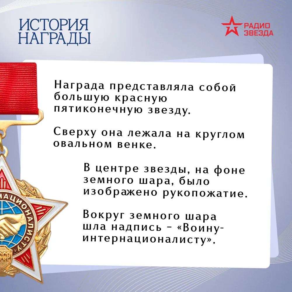 Подробнее о нагрудном знаке «Воину-интернационалисту» слушайте в эфире Радио ЗВЕЗДА