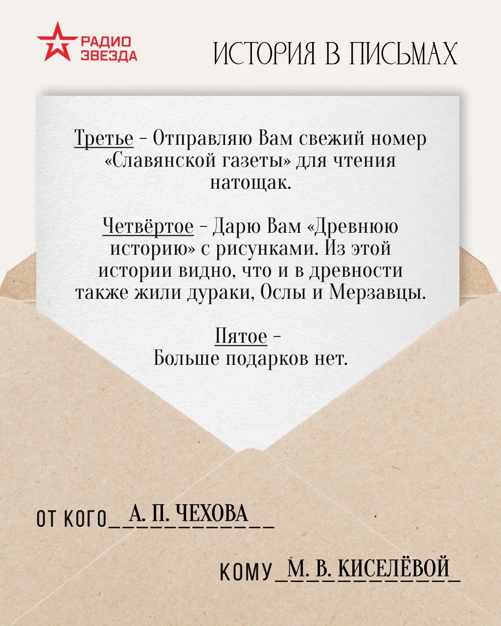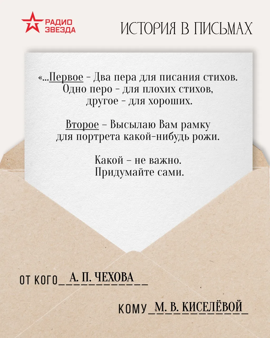 Из письма Антона Павловича Чехова – известной детской писательнице Марии Владимировне Киселёвой.