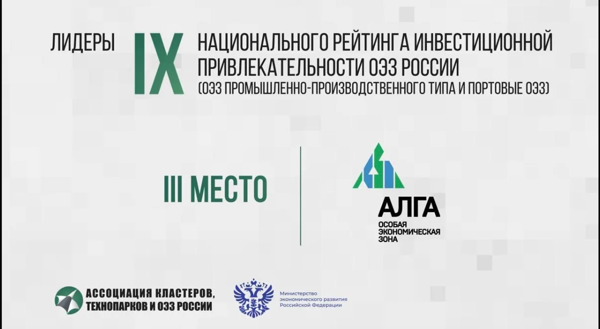 Наша ОЭЗ «Алга» – впервые в тройке лидеров Национального рейтинга инвестиционной привлекательности особых экономических зон России.