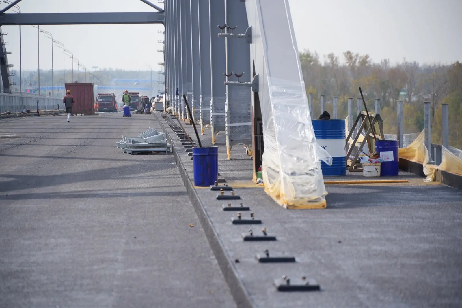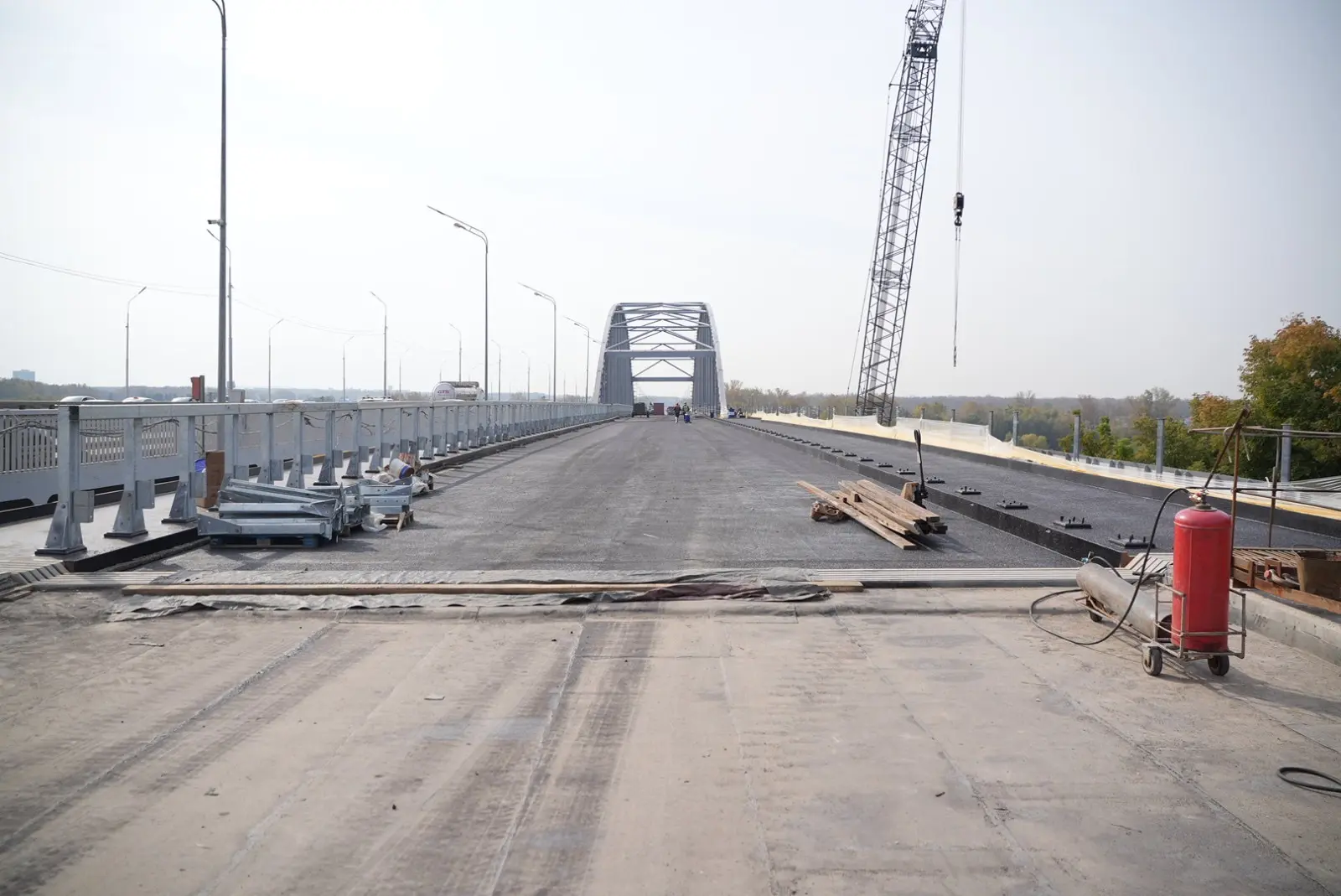 Движение на арочном мосту через Белую запустим уже 10 октября – накануне Дня Республики. Для этого почти все готово – сейчас строители наносят гидроизоляцию, асфальтируют тротуары, устанавливают опоры наружного освещения, ограждение. Полностью работы завершим в 2026 году, в частности, предстоит рекультивировать земли, которые были задействованы в ходе капремонта, демонтировать временные конструкции.