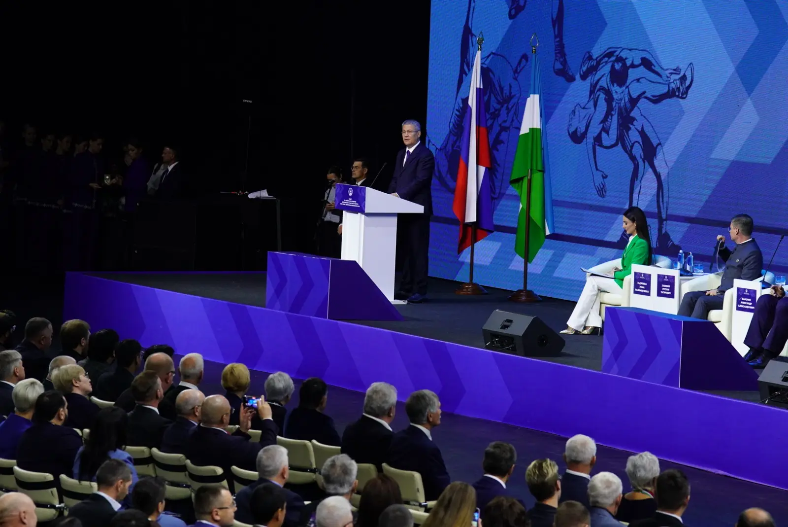 В работе Совета сегодня участвуют более 500 человек. Приятно видеть среди них почетных гостей нашей республики – первого заместителя министра спорта России Одеса Байсултанова, руководителя Федерального агентства по делам молодежи Григория Гурова, сенатора, Героя России, трехкратного олимпийского чемпиона Александра Карелина, наших прославленных спортсменов, а также представителей Индии, Узбекистана, Афганистана.