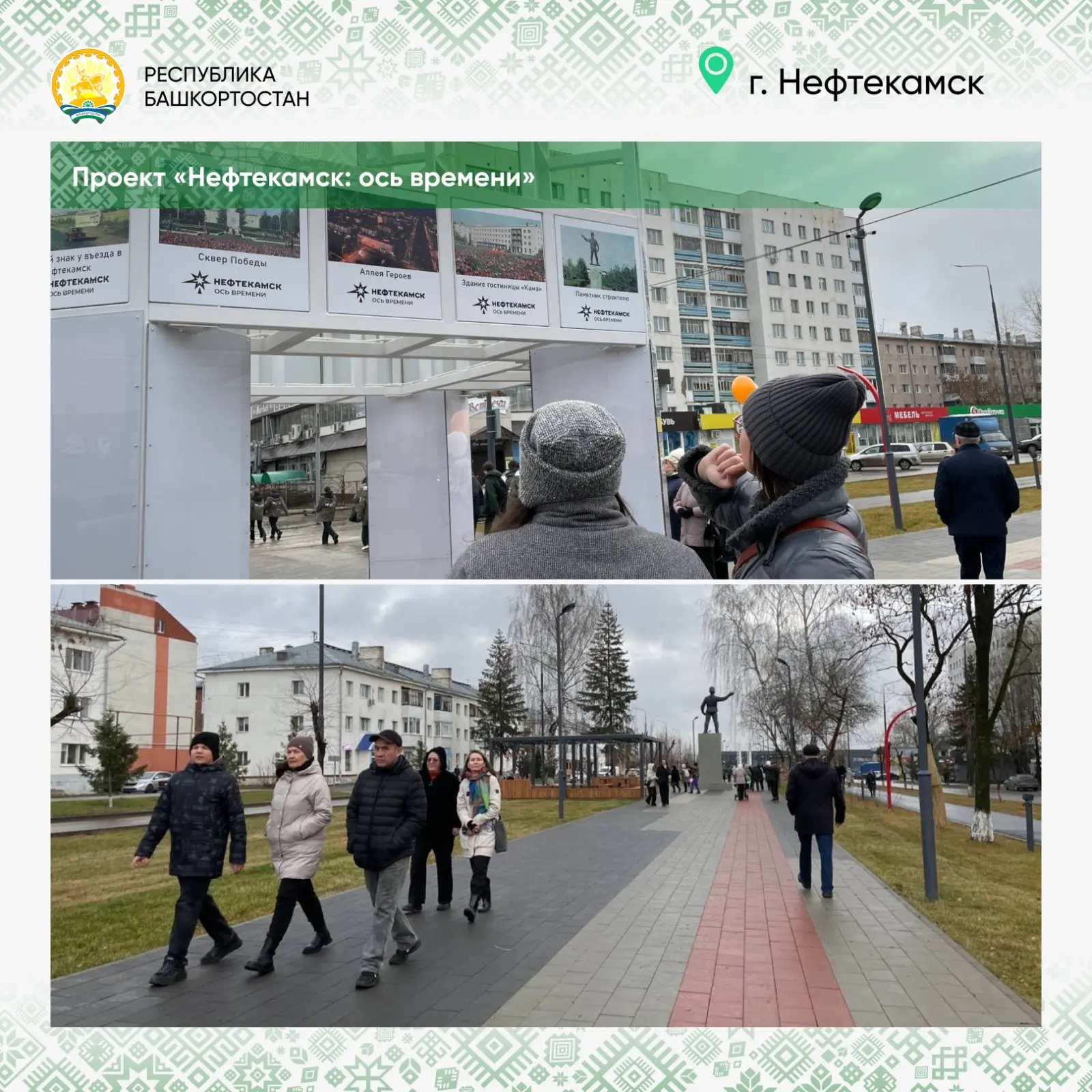 Очень интересный проект реализовали в Нефтекамске. Он называется «Ось времени» – это аллея, которая «рассказывает» историю города. В последние годы Нефтекамск тоже здорово преобразился, здесь появилось много хороших общественных пространств.