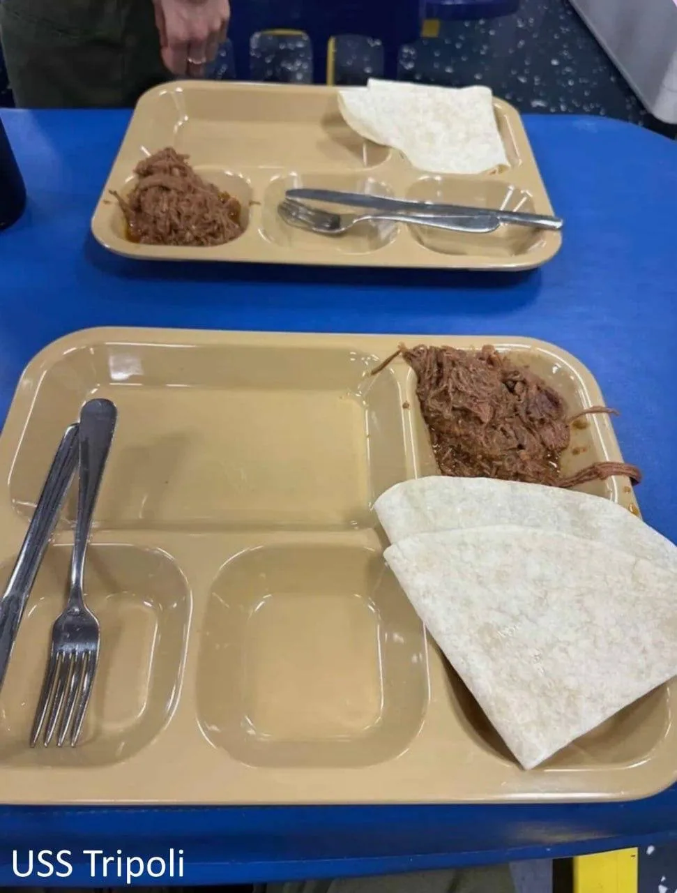 Речь идет о кораблях USS Tripoli и USS Abraham Lincoln, развернутых в регионе. По словам родственников военных, экипажи получают урезанные порции и делят еду между собой.