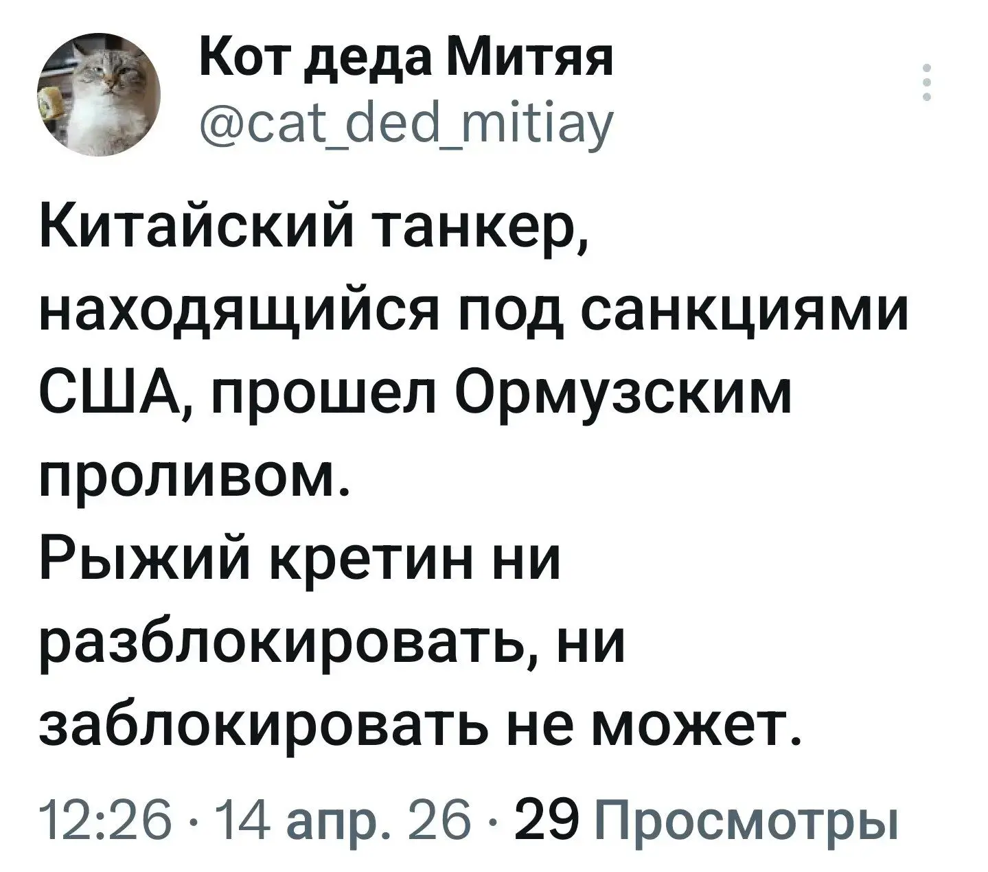 Но есть одно но: Ирану теперь придётся платить за каждый танкер».😀
