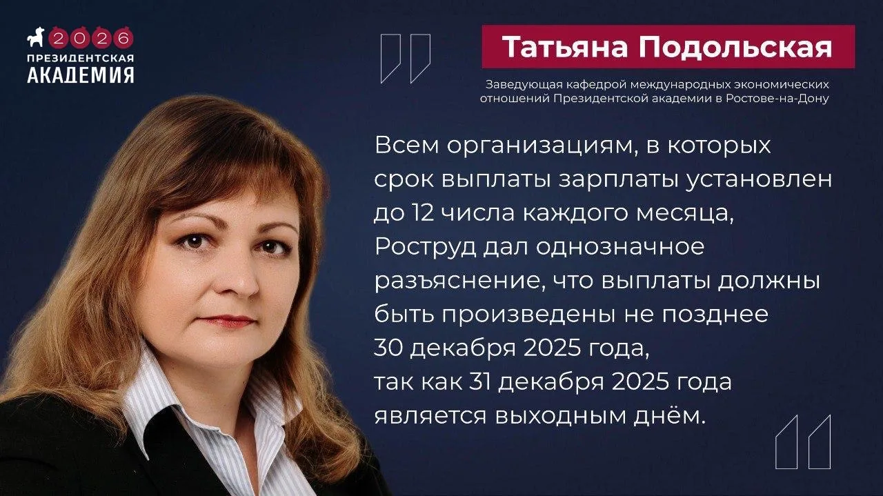 Если в организации установлено, что сроком выплаты заработной платы является 12 число каждого месяца, то работодатель ничего не нарушит, если выплатит зарплату за декабрь 2025 года 12 января 2026 года, поскольку это первый рабочий день в следующем году.