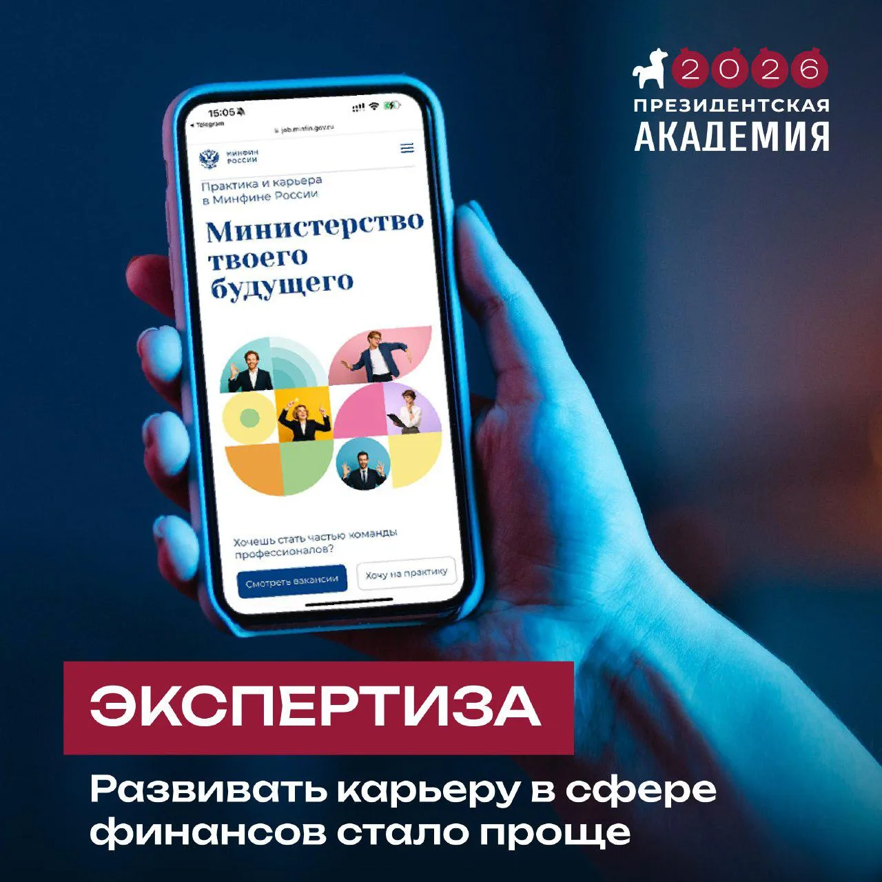 «Министерство твоего будущего» — проект для студентов и потенциальных кандидатов на замещение вакантных должностей в Минфине России. На одном ресурсе собрана вся информация о практике и вакансиях.