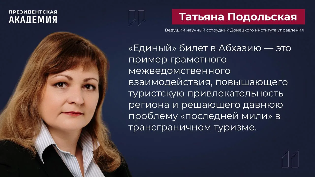 Организация мультимодальных перевозок туристов по системе «единый» билет – хорошая и уже устоявшаяся в России практика, которая способствует росту доступности и привлекательности многих туристских дестинаций. По «единому» билету можно добраться до ключевых горнолыжных курортов Кавказа, курортных локаций на побережье Балтийского моря и др. Применение этой практики для организации поездок в Абхазию крайне актуально в условиях роста привлекательности этой страны для российских туристов. В летнем сезоне 2025 года Абхазия впервые заняла первое место среди зарубежных направлений у россиян: за год отдохнуть в Абхазию съездило больше российских туристов, чем в Турцию