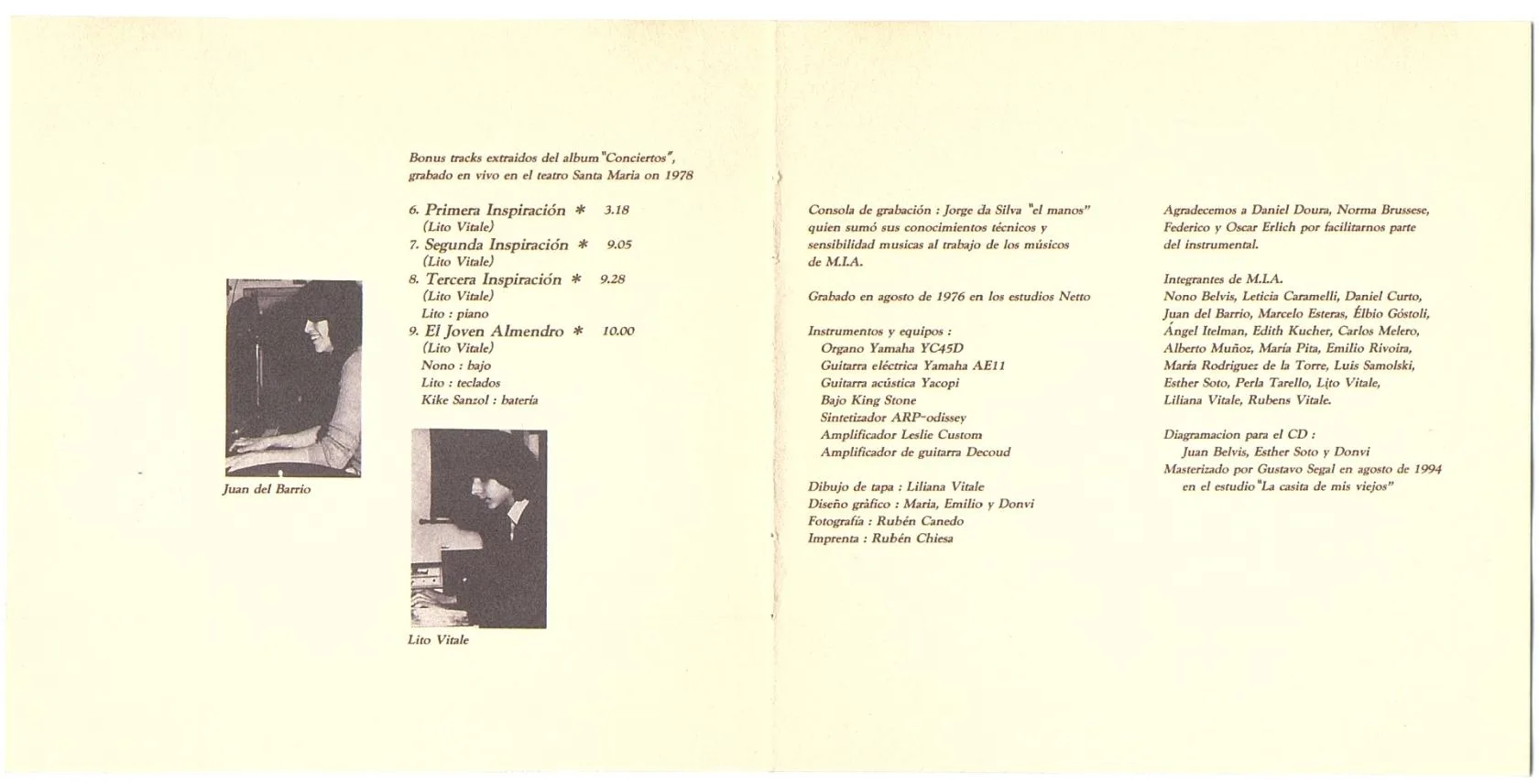 Lito Vitale — drums (01-04), synths (02), organ, piano, flute (05), vocals (05)