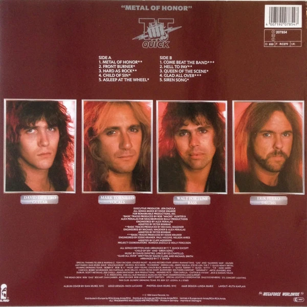Альбом «Metal Of Honor» группы TT Quick вышел 14 июля 1986 года на лейблах Megaforce Records в США и Island Records в Европе. Это дебютный полноформатный студийный релиз американской хэви-метал группы из Нью-Джерси, который стал их самой известной работой и одним из наиболее ярких, но недооцененных примеров традиционного американского пауэр-метала середины восьмидесятых. История создания альбома началась в конце семидесятых, когда в конкурентной барной сцене Нью-Джерси сформировалась группа под названием Thrown Together Quick (сокращенно TT Quick — «собраны наспех»). К 1983 году они уже имели собственный материал и привлекли внимание Джона Зажулы, основателя только что созданного лейбла Megaforce Records. Зажула, который одновременно запускал карьеры Metallica и Anthrax, увидел в TT Quick потенциал и подписал их. После выпуска EP в 1984 году группа записала свой первый полноценный альбом в 1985–1986 годах. Материал отражает дух клубного металла восточного побережья с акцентом на мощные риффы, запоминающиеся припевы и гитарное мастерство.