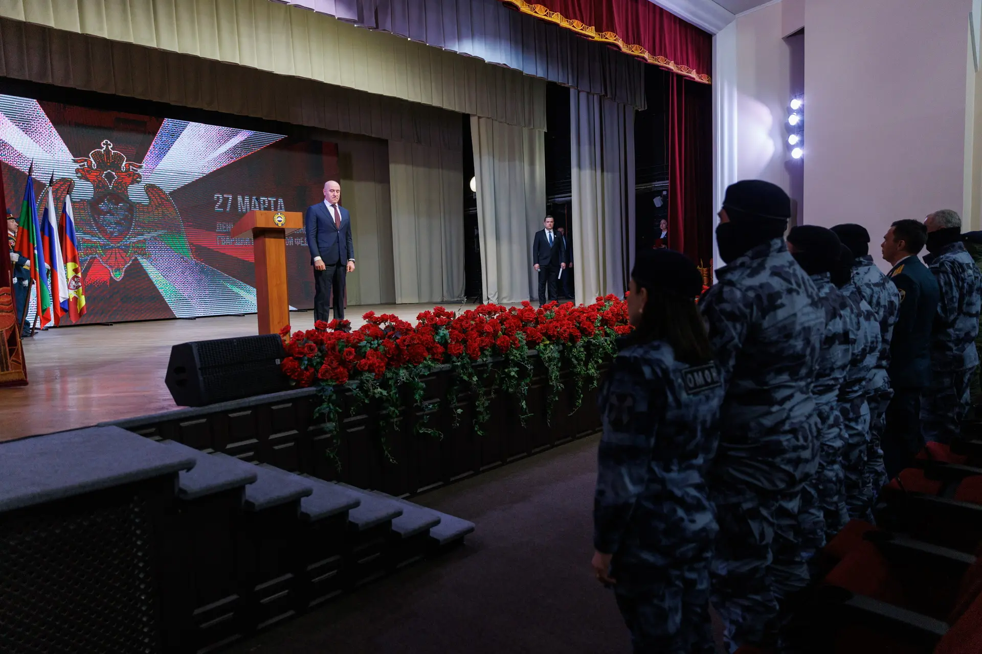 Сотрудники Управления достойно выполняют поставленные задачи: обеспечивают общественный порядок, участвуют в антитеррористических мероприятиях, охраняют важные государственные объекты и инфраструктуру. Отдельно подчеркнул, что сегодня сотрудники ведомства принимают участие в специальной военной операции, проявляя мужество, профессионализм и верность присяге.