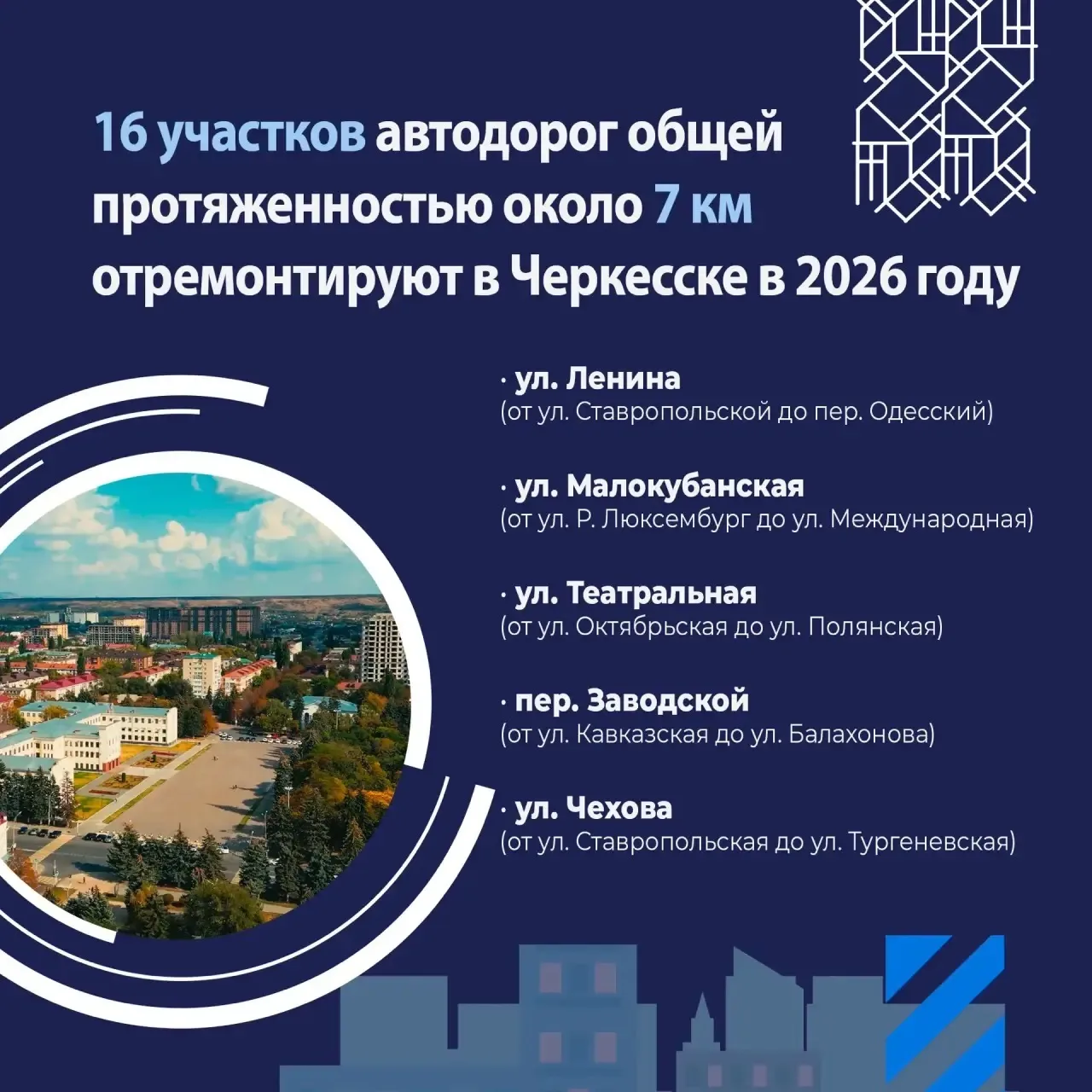 Продолжаем системно приводить в нормативное состояние дорожную сеть республиканской столицы. В этом году планируем отремонтировать в Черкесске 16 участков автодорог общей протяженностью около 7 км. Параллельно обустроим 11 участков тротуаров - это еще свыше 7 км удобных и безопасных пешеходных маршрутов. Работы выполним за счет средств дорожного фонда КЧР.