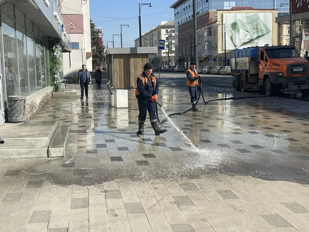 Наши коммунальные службы наводят порядок в Уфе после зимы: моют проезжие части, парковочные карманы и тротуары, очищают технические полосы, прилотковые зоны, дорожные ограждения и остановки.