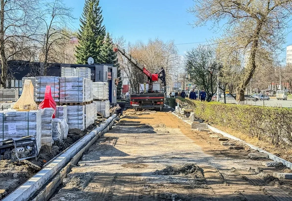 Мы продолжаем благоустройство проспекта Октября на участке от бульвара Саид-Галиева до улицы Шафиева.