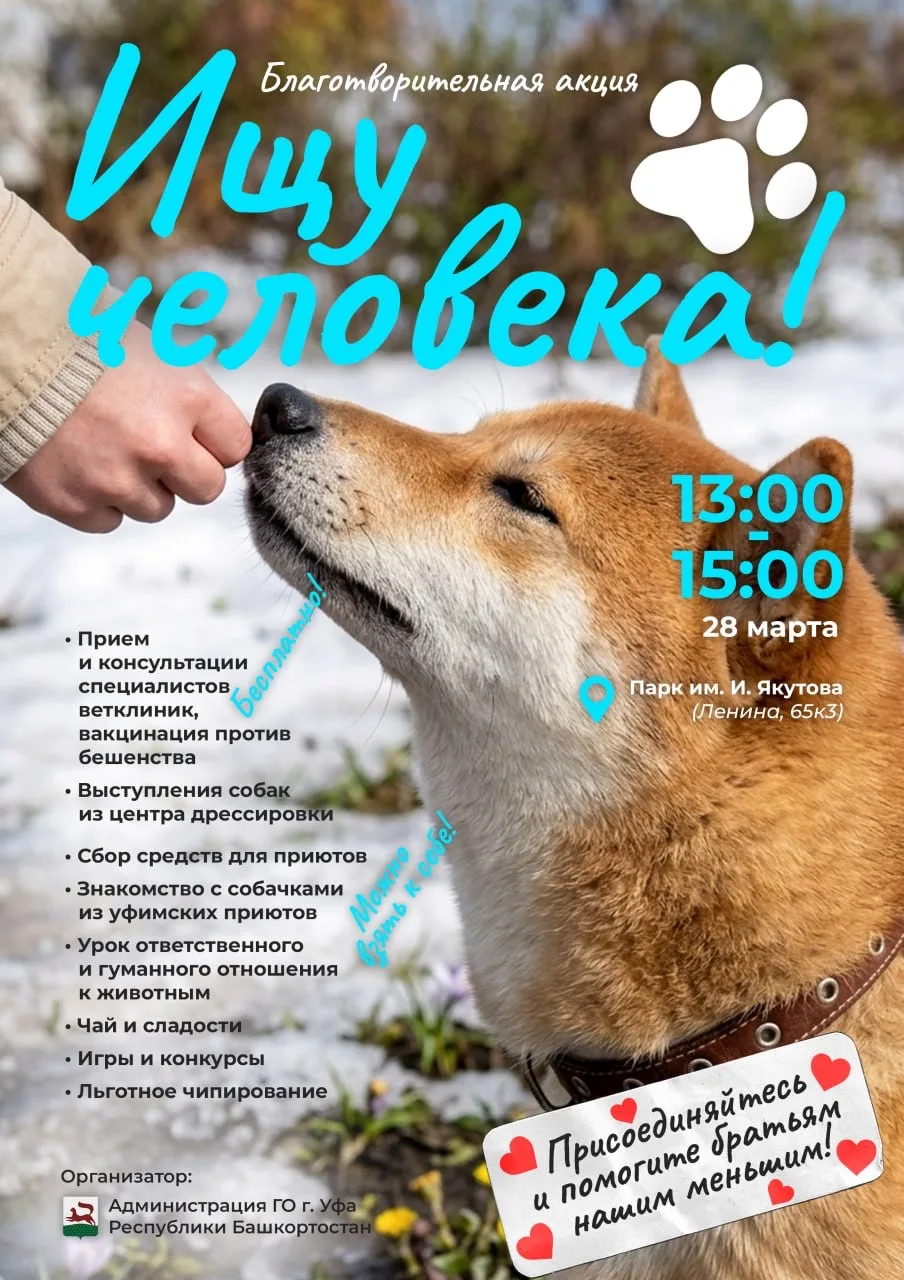 Продолжаем помогать нашим четвероногим друзьям. В эту субботу пройдёт очередная благотворительная акция «Ищу человека».
