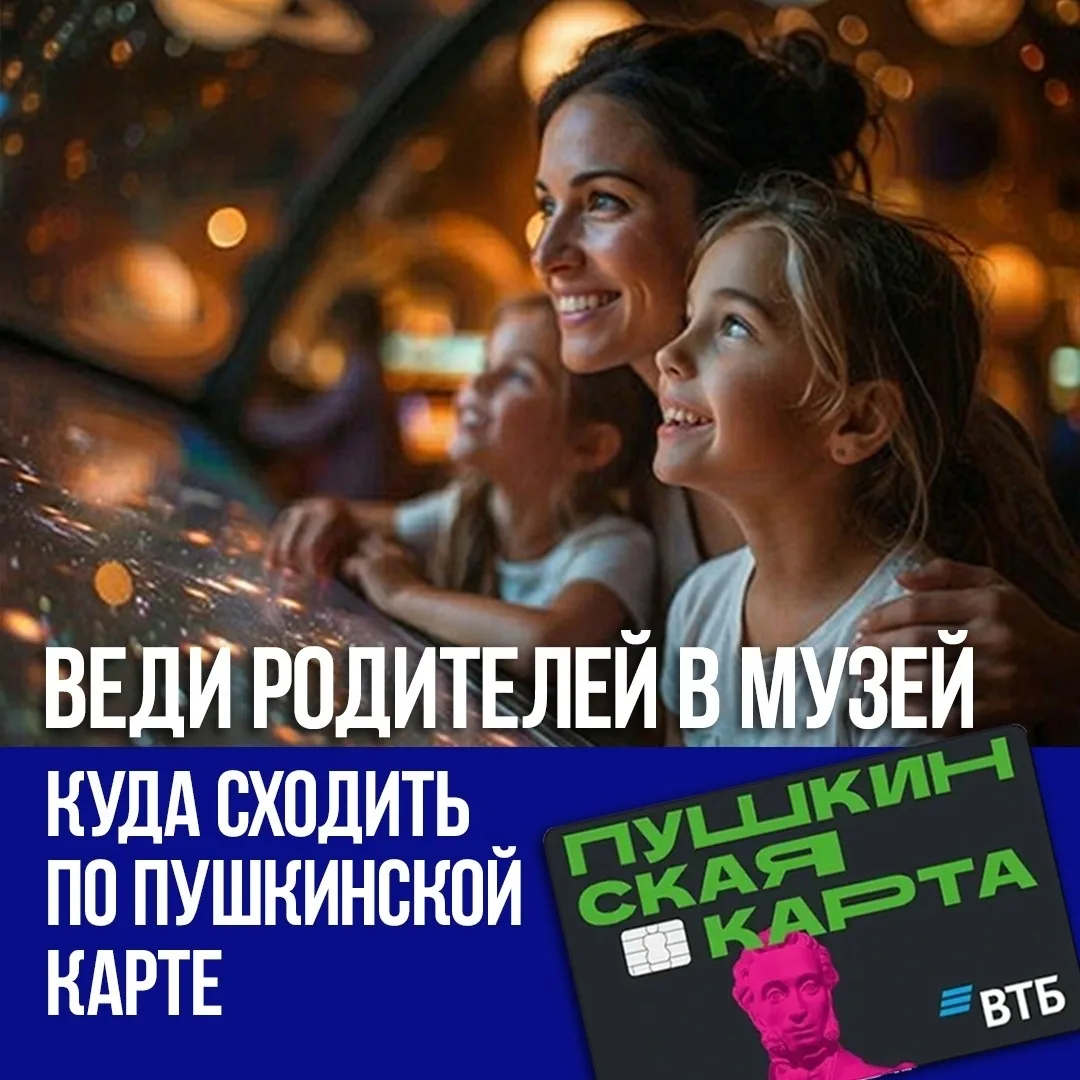 🏛 До 5 апреля по всей стране проходит акция «Веди родителей в музей». Правила участия простые: ребенок покупает билет себе по Пушкинской карте, а затем — для родителей со скидкой 10%.