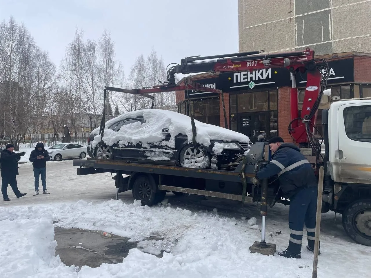 Уважаемые челябинцы! Просим вас не оставлять автомобили на нерасчищенных придорожных парковках. Такие машины значительно затрудняют уборку снега.