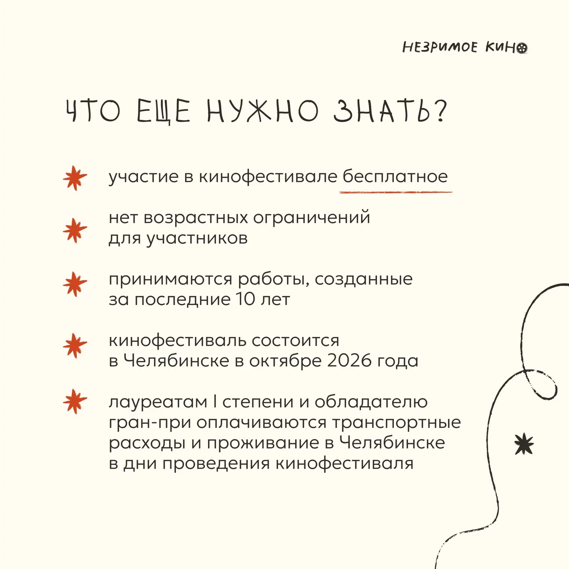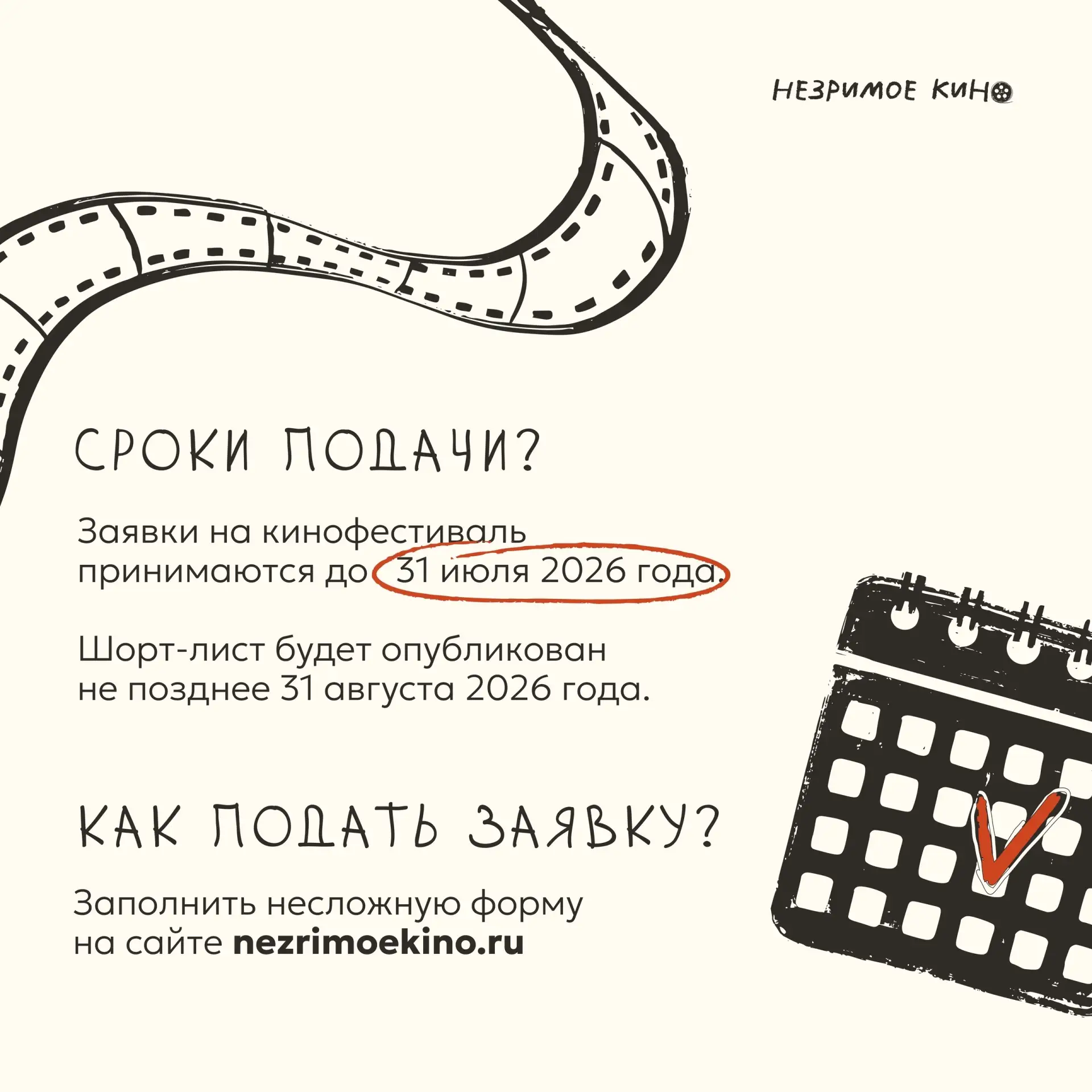 Участие бесплатное. Подать заявки могут жители России и стран ближнего зарубежья. Работы принимаются до 31 июля на сайте 🌐 nezrimoekino.ru.