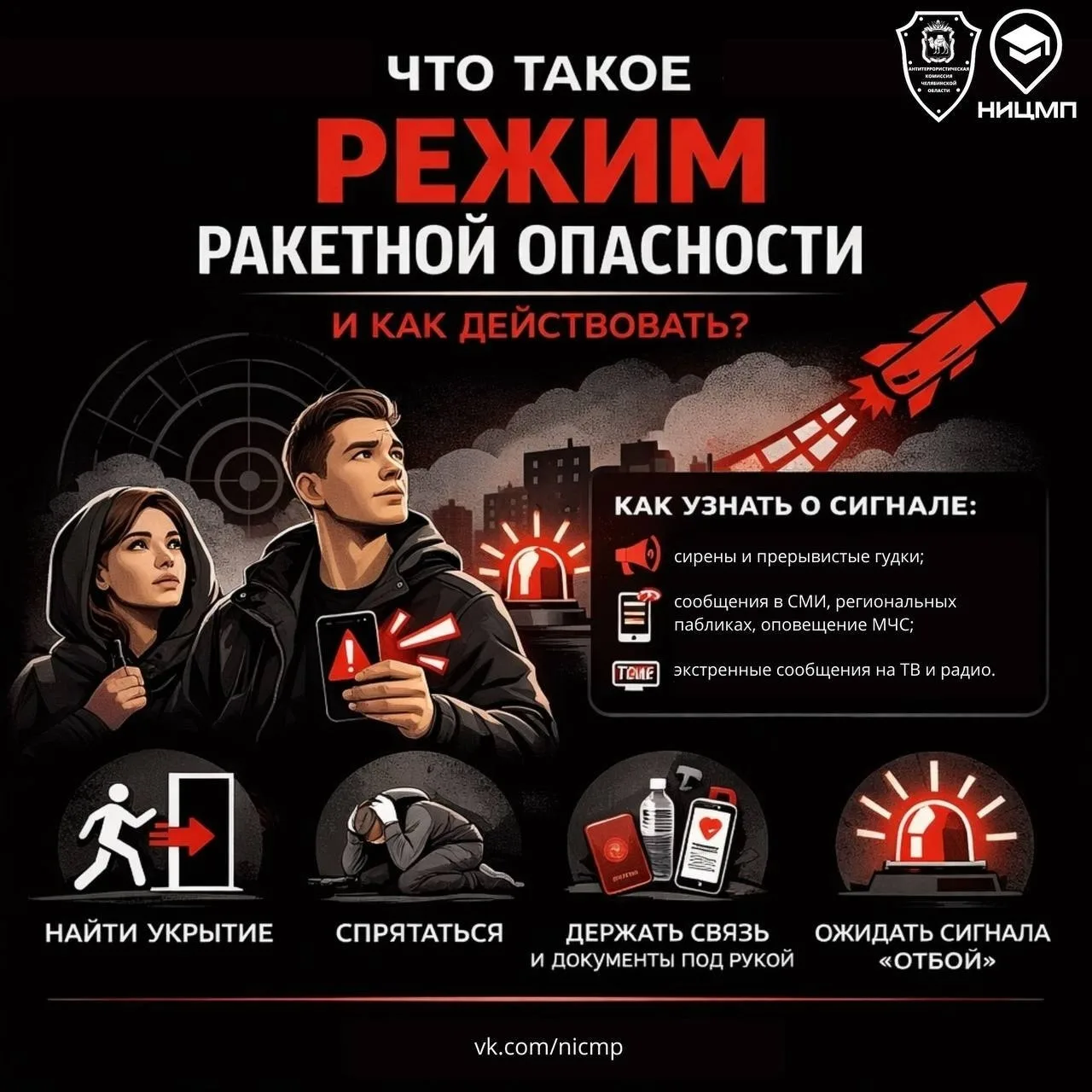 Режим ракетной опасности — это сигнал гражданской обороны, который означает угрозу воздушного нападения. Вводится, когда есть вероятность удара ракетами, беспилотниками или другими средствами поражения.