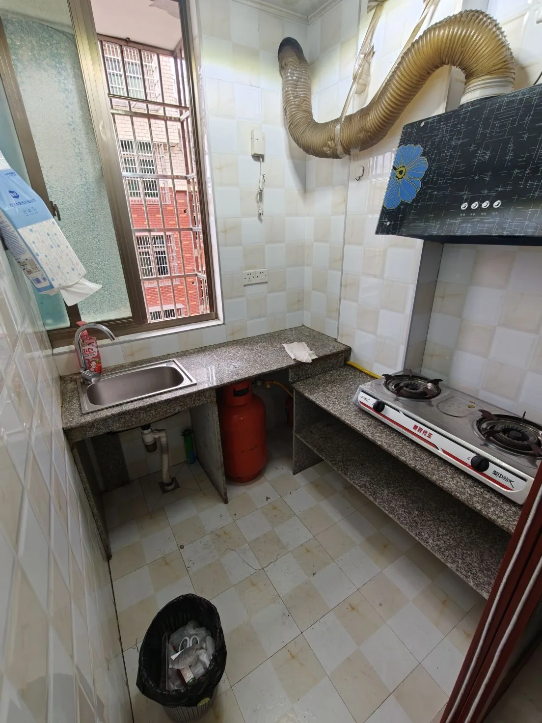 Суть при этом примерно у всех одна. Эта маленькая кухня с газовой плитой. Баллоны покупаешь, привозят , меняют. Маленькая ванна с душем над унитазом. Окна так, для вида - раздвижные, с щелями. В тайфун рама может вылететь - решётка спасает. Отопления нет. Стены просто покрашены белой краской - это тоже такой общекитайский стандарт.
