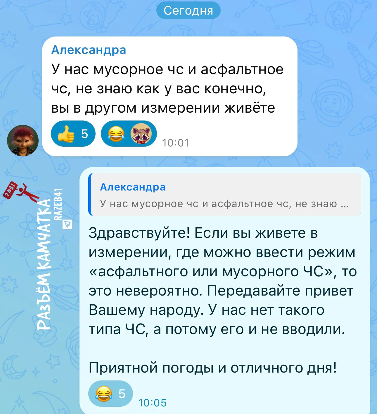 Тем временем Александра, из другого измерения, ввела свои режимы ЧС, комментируя пост в 112.