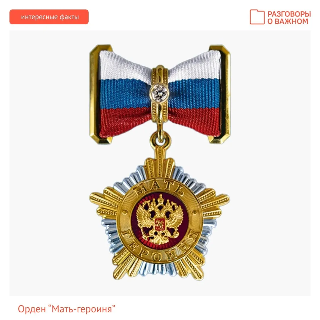 👑 «Мать-героиня» — орден за высшее призвание женщины. За продолжение рода и будущее России. Вручается матерям, родившим и воспитавшим 10 и более детей.