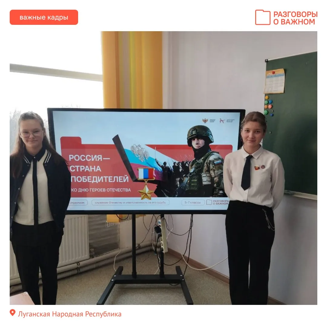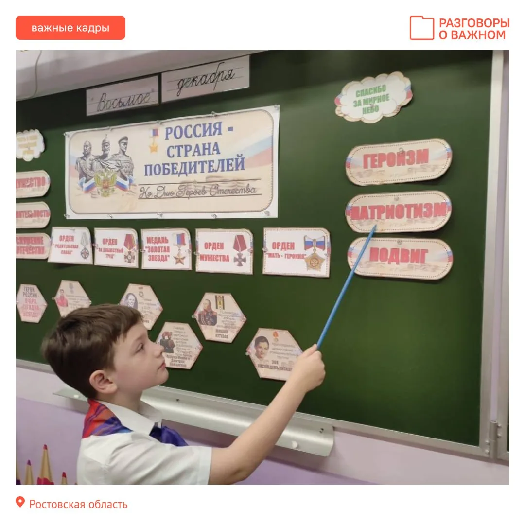 Еженедельные «Разговоры о важном» прошли по всей стране. На этой неделе они приурочены ко Дню Героев Отечества. Ребята знакомились с историями Героев, определяли качества, необходимые для подвигов и многое другое.