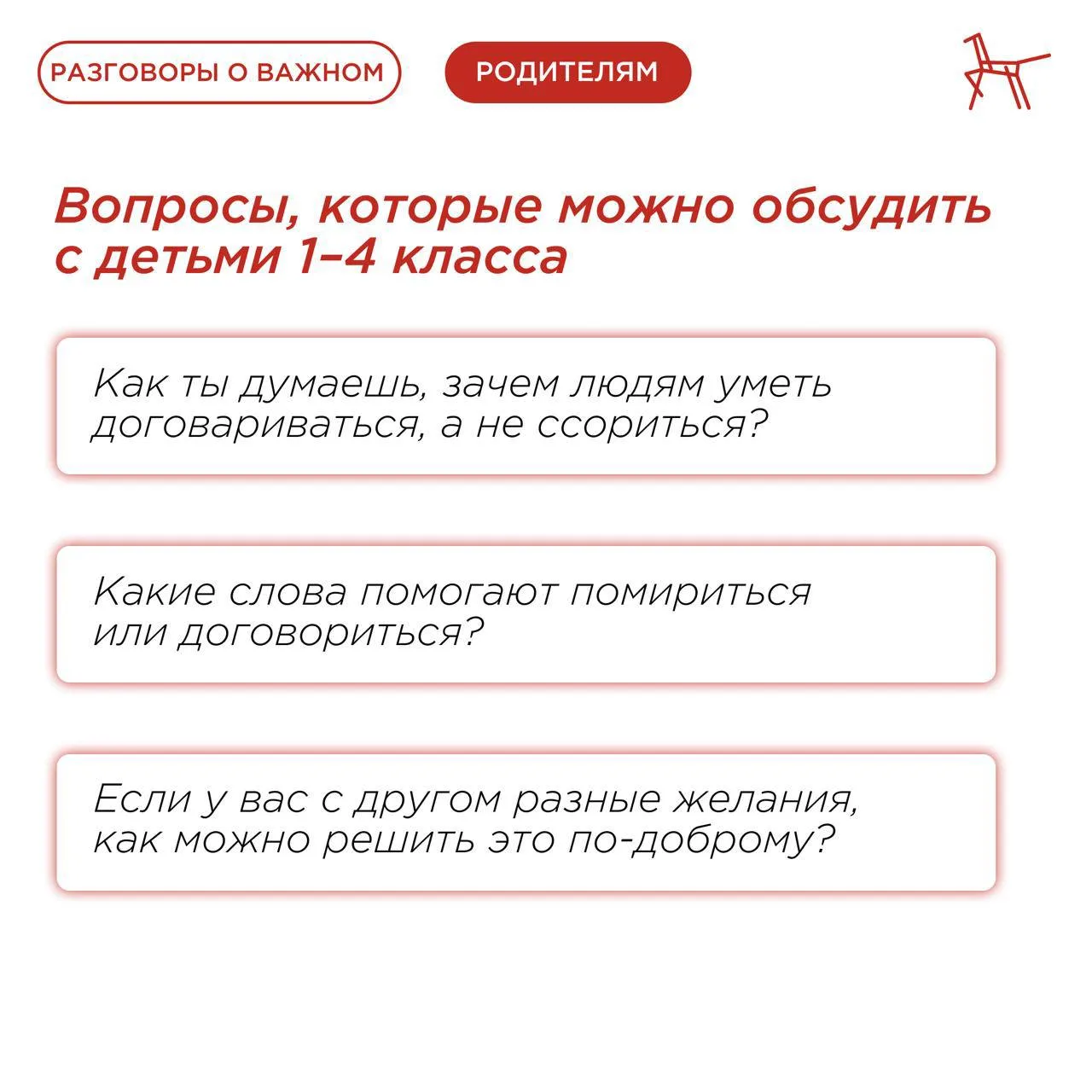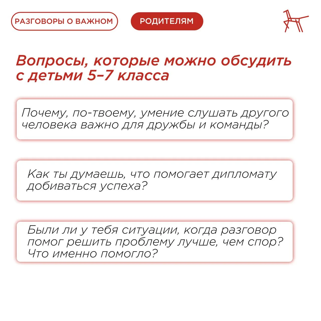 🚩Усвоить навык ребятам помогут сегодняшние #РазговорыоВажном. Как же закрепить пройденное? Читайте в карточках Института воспитания💡