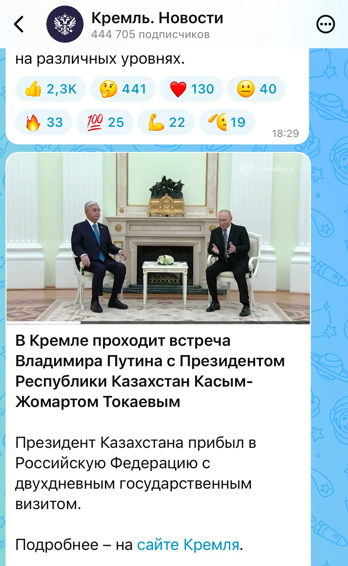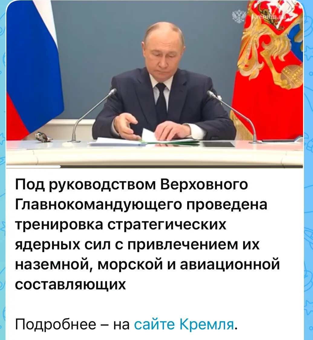 Каждый день в мире происходит тысячи событий, но за новостями, в которых участвует наш президент Владимир Путин, пристально следит весь мир. Это и тренировки ядерных сил, и встречи с героями СВО, и переговоры с мировыми лидерами. Чтобы быть в курсе всех важных событий и получать достоверную информацию, следите за официальными ресурсами Кремля в отечественных соцсетях. Будьте в курсе настоящего! Подписывайтесь на канал Кремля в МАХе