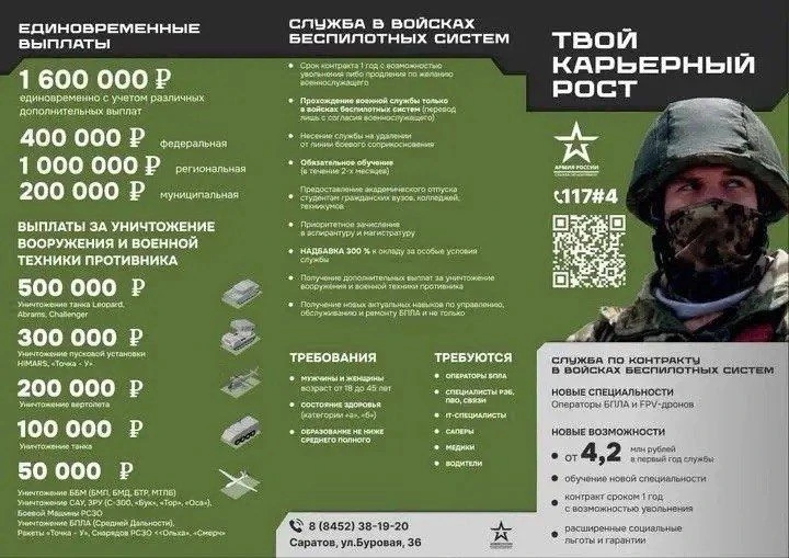 🇷🇺 Минобороны РФ предлагает заключить контракт с войсками беспилотных систем