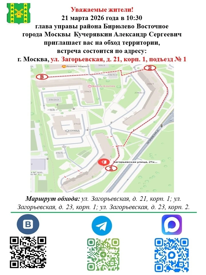 ⏳Начало обхода в 17:00 по адресу: Востряковский проезд, д.11,корп.1, под.1