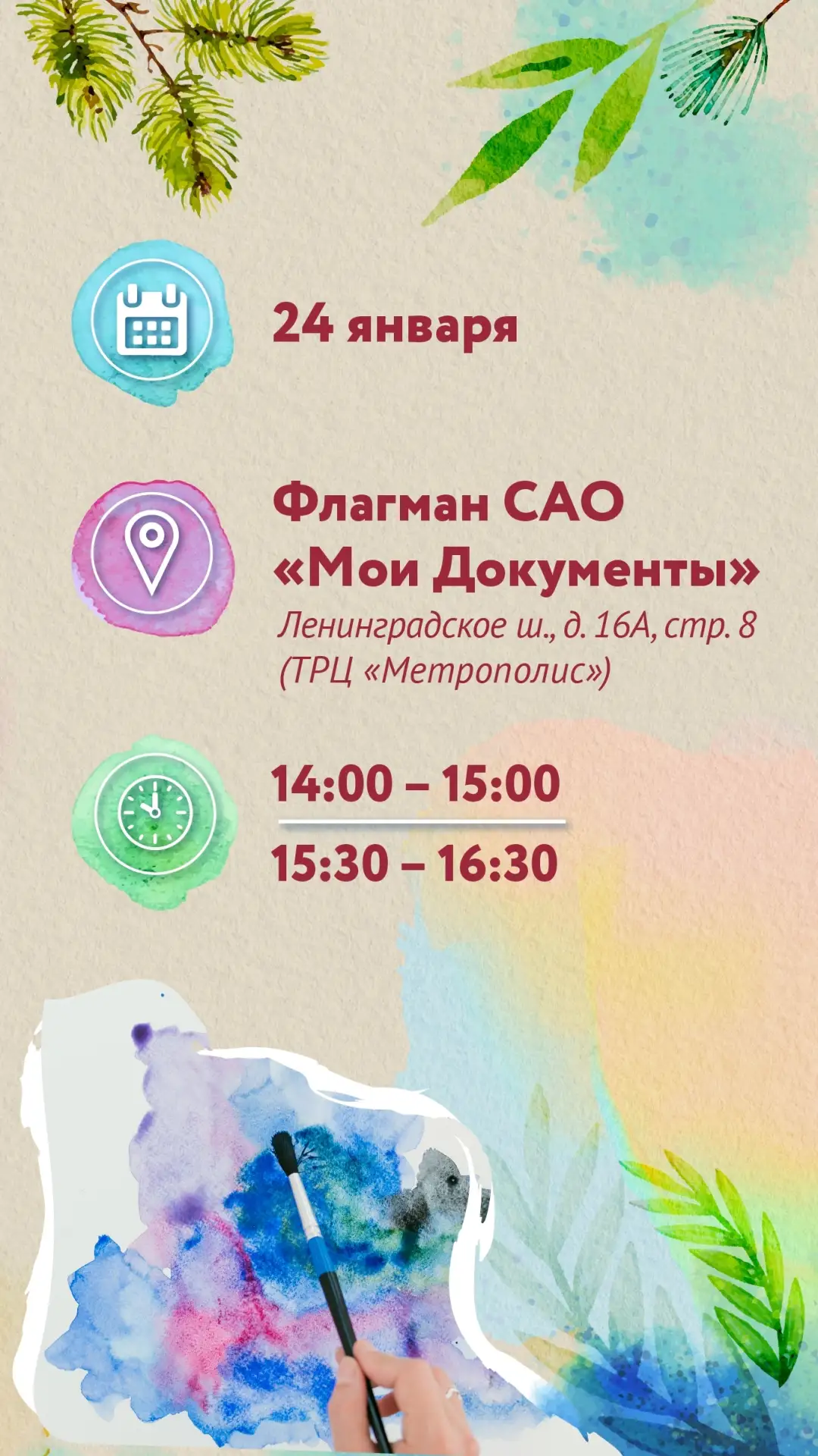 🎨 Пробный урок акварели — 24 января!